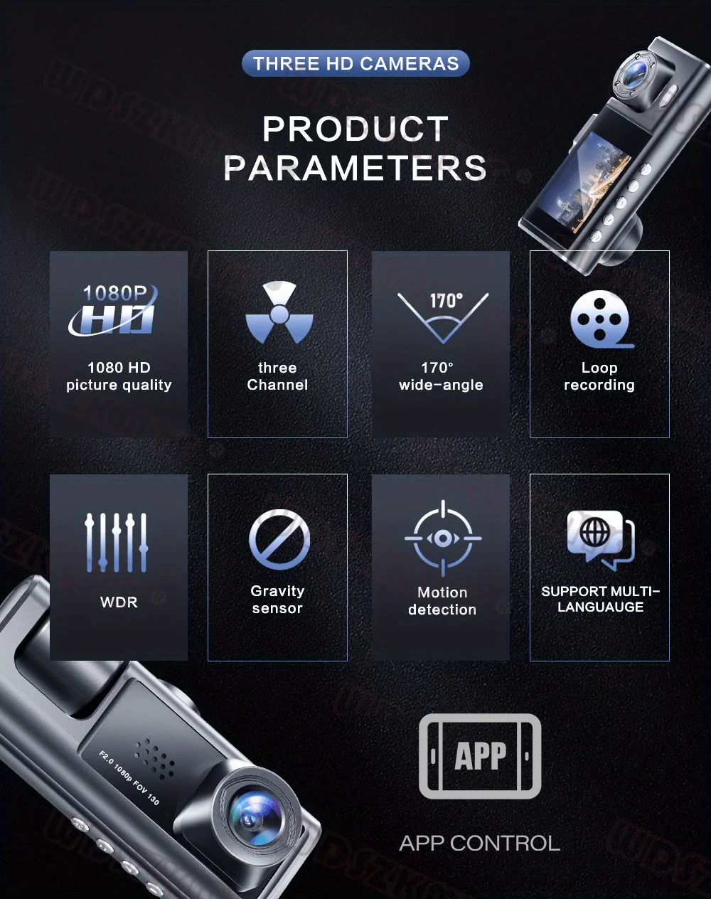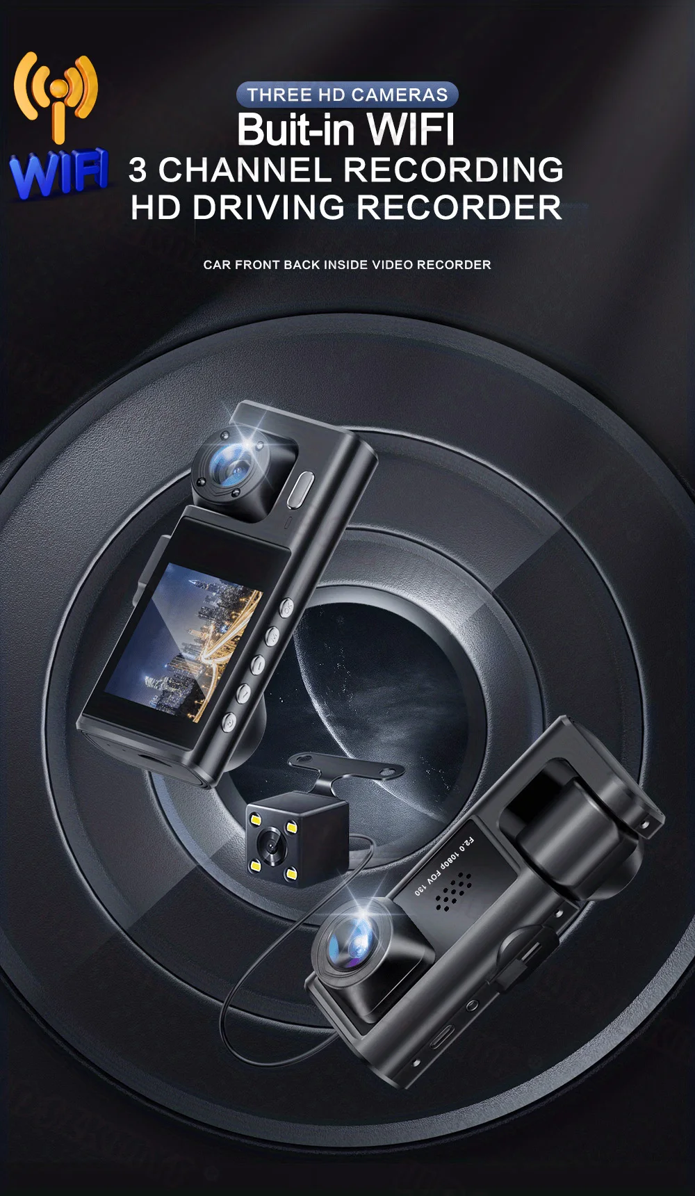 WIFI APP Control Car Dvr 3 Channel 1080P Dash Cam for Cars Front and Rear View Recorder Video Car Camera for Car Assecories